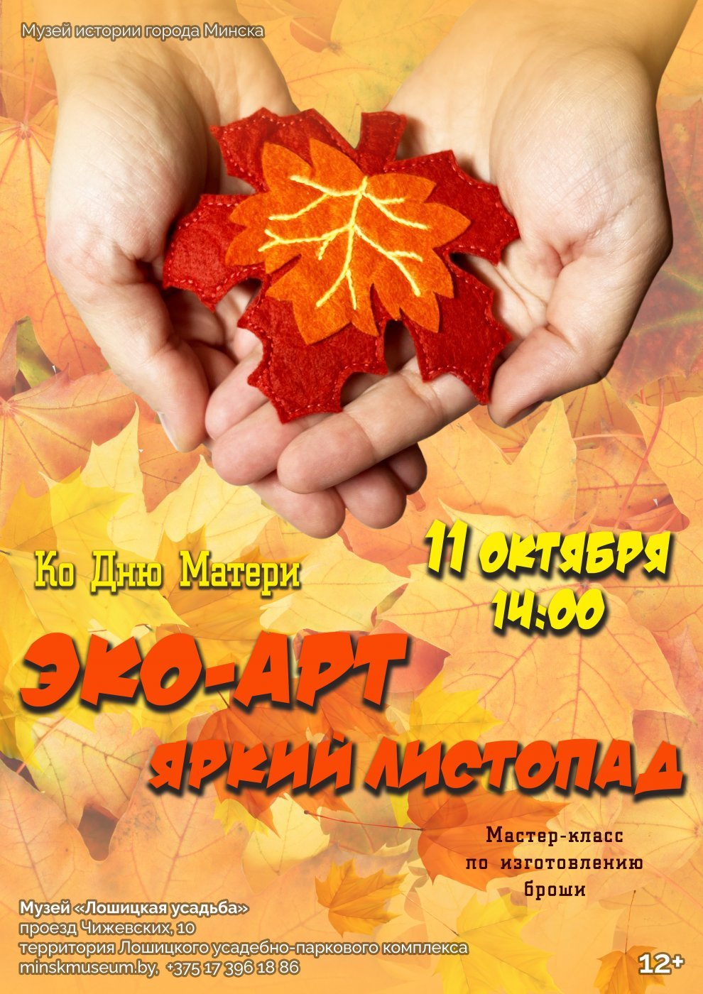 11 октября 2025 г. в 14:00, в музее «Лошицкая усадьба», филиале Музея истории города Минска, в рамках проекта «Природная мастерская» состоится мастер-класс «Эко-арт: яркий листопад».